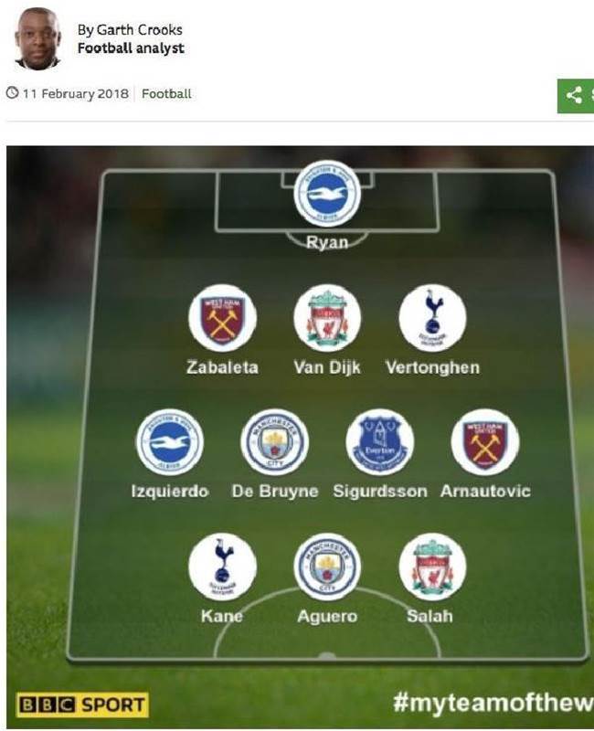 Ryan was the hero for mid-table Brighton as he saved a 90th minute penalty to salvage a 1-1 draw against Stoke City, and was named in the BBC's Team of the Week as a result.
